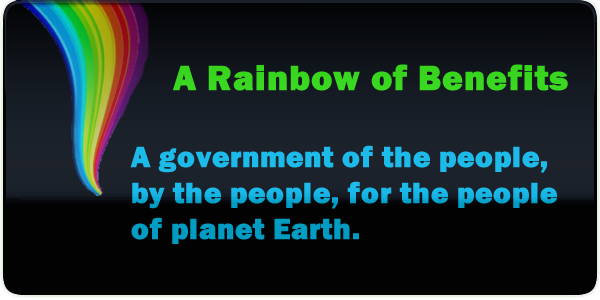 It was introduced as a way to provide representation and ensure the rights of the individual, the human species, and other species across the spectrum of sentient and non-sentient life, while working to achieve planetary sustainability, peace, possibility, plenitude, and the realization of happiness and a reality of love for all the inhabitants of the Earth (read more on these states of being). As idealistic as this sounds we need to remind ourselves of the quote found in the Declaration of Independence for the the United States, "Life, Liberty and the pursuit of happiness." And, Jefferson's statement, "for this reason govenments are established."
